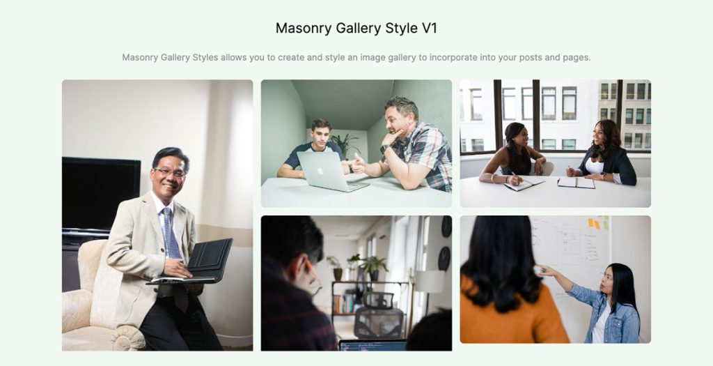 | Masonry Gallery is not available | Masonry Gallery is available in 2 different styles. |