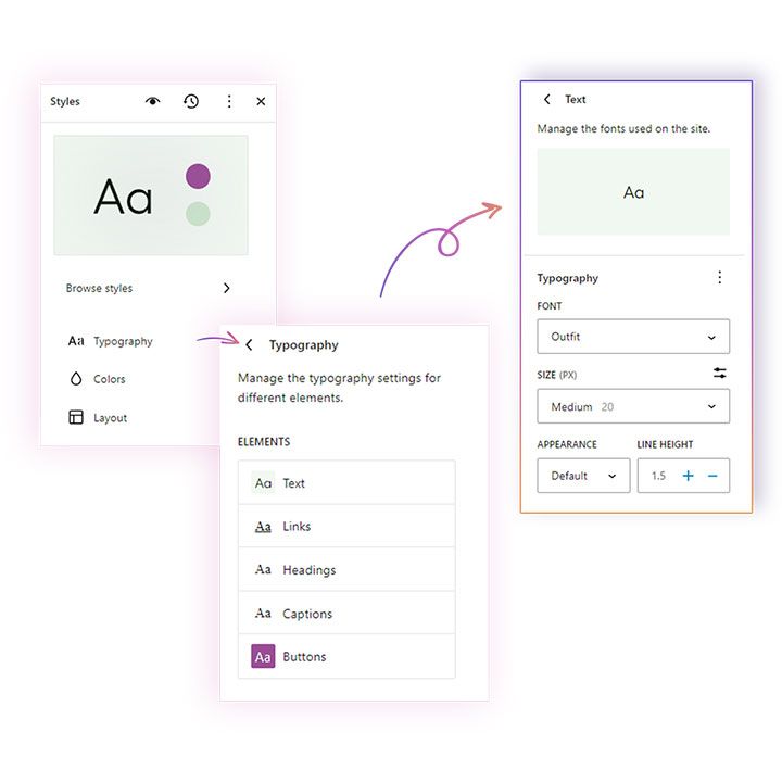 Block themes provide customization options through the WordPress Customizer This allows users to change colors, layouts, and other design elements to achieve advanced and unique design.