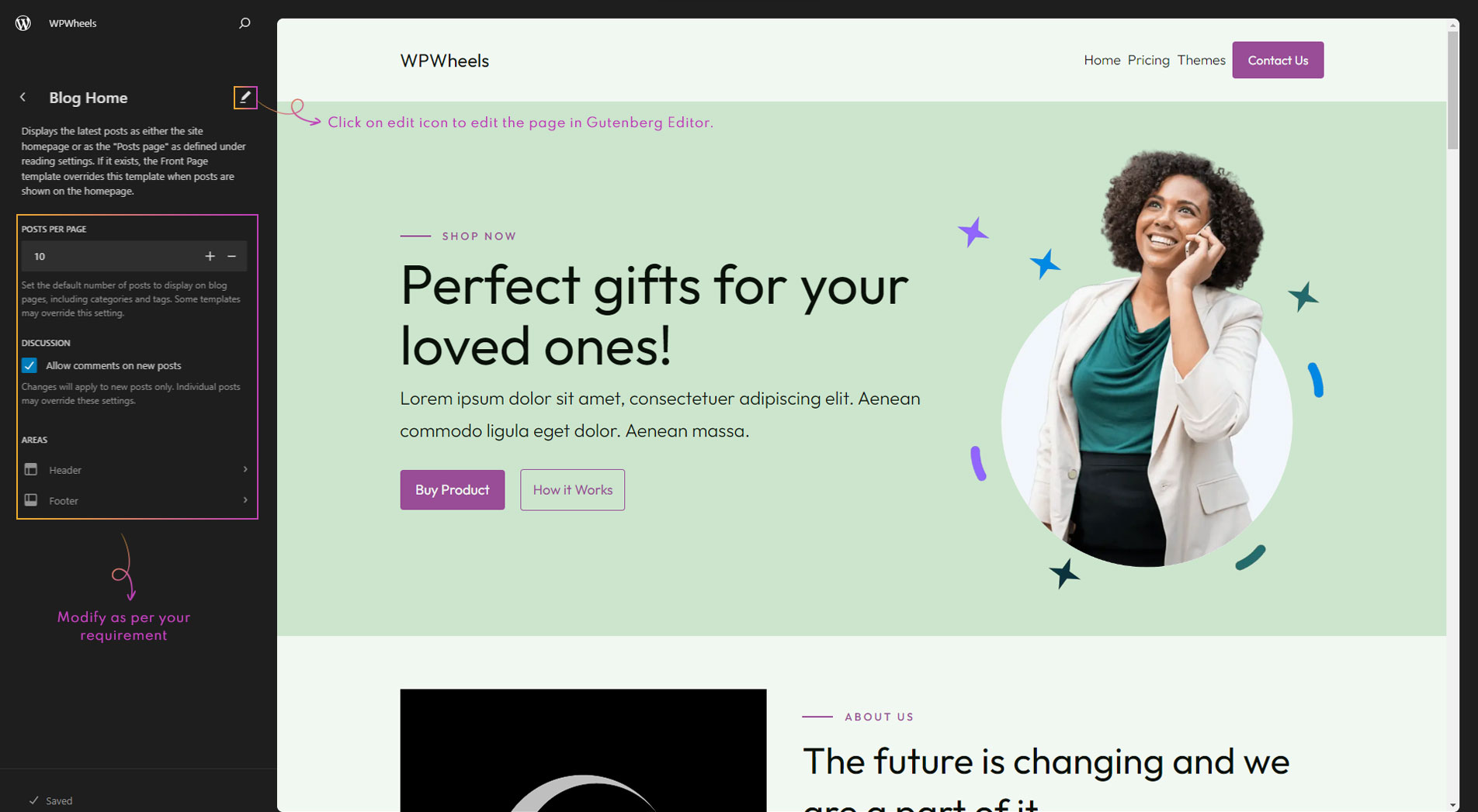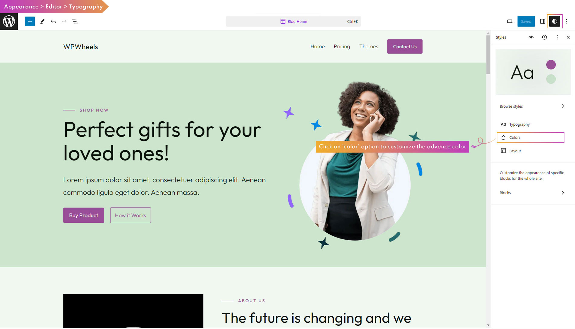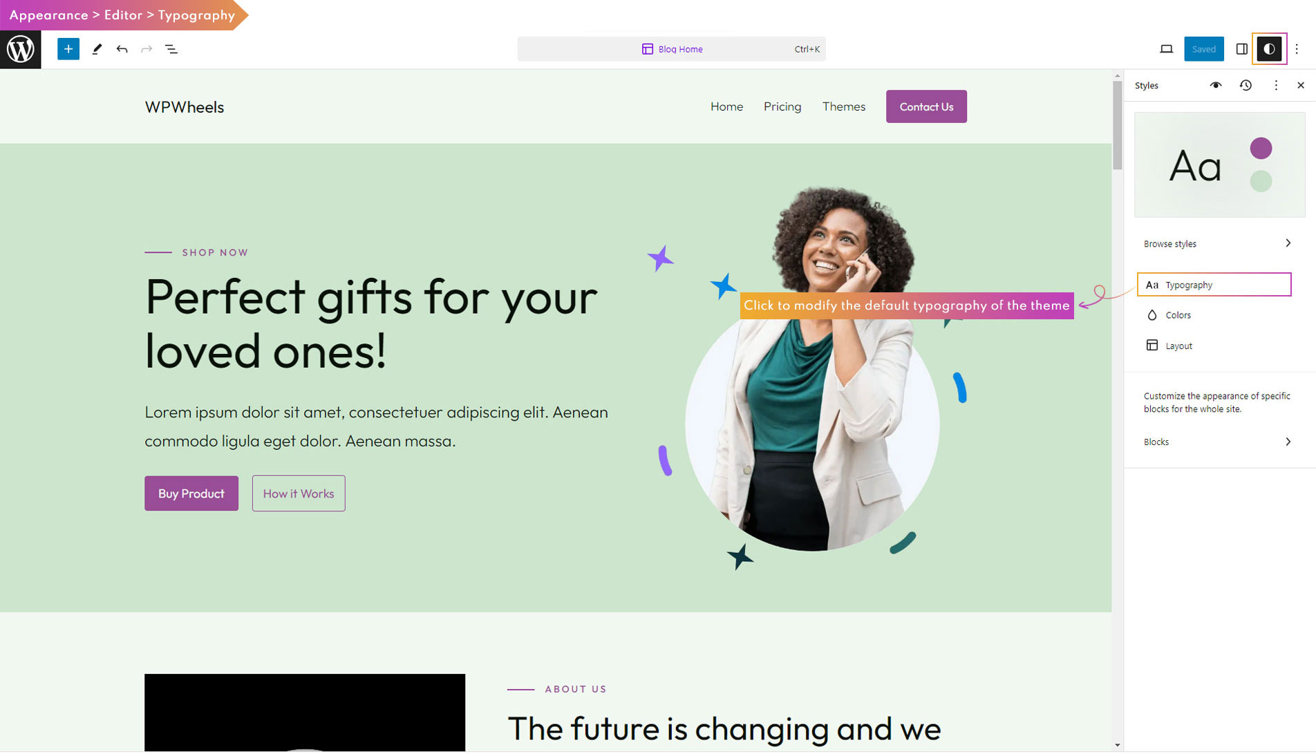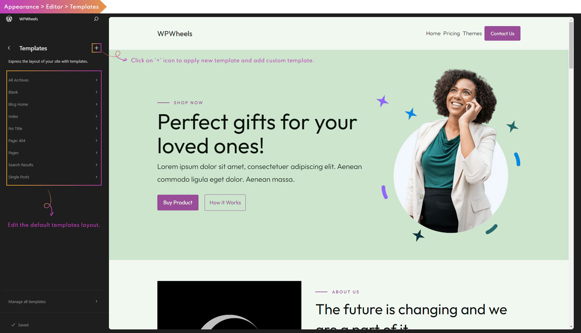The BlockWheel themes are Full Site Editing themes. You can customize the website’s appearance using the block editor. It has the following options: