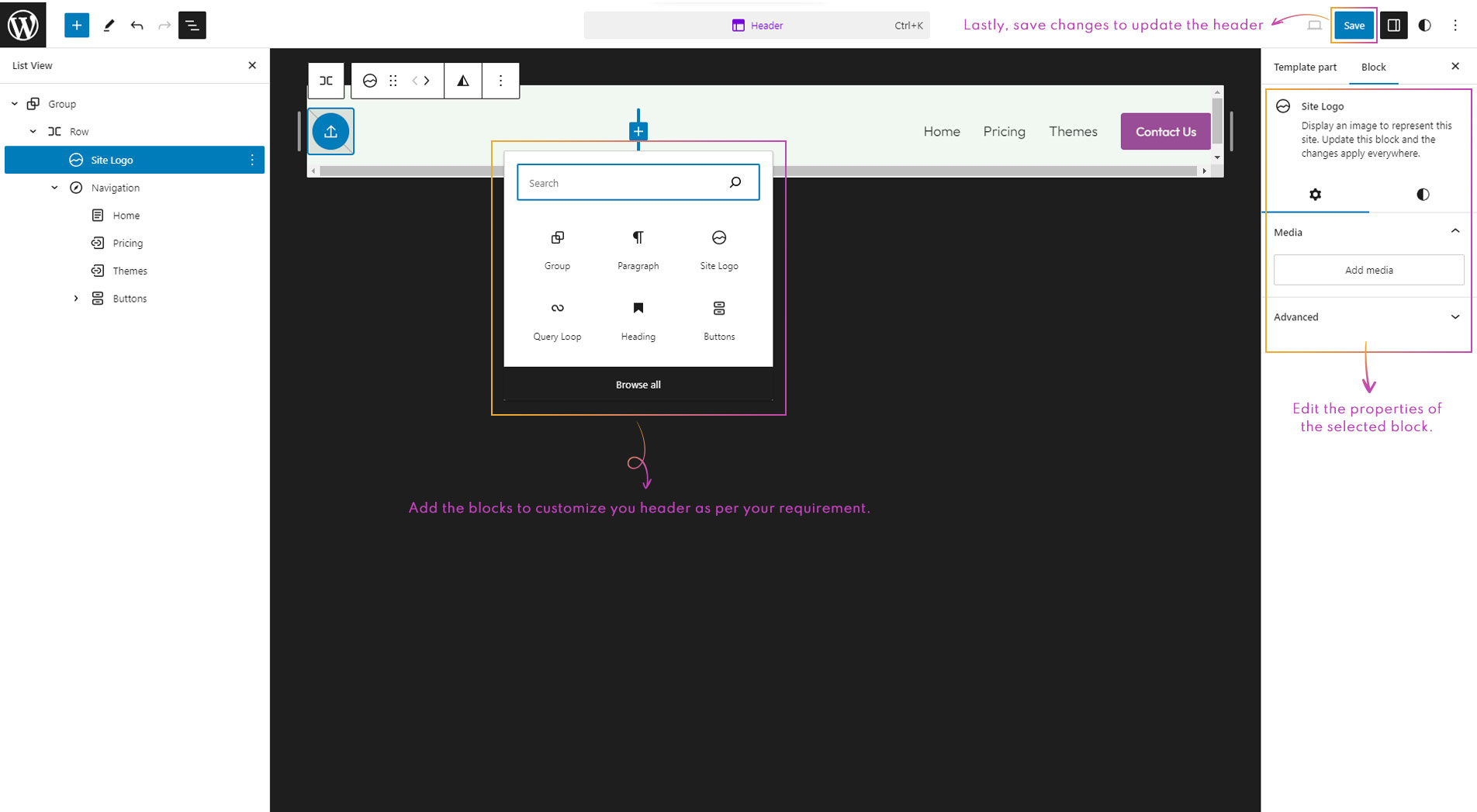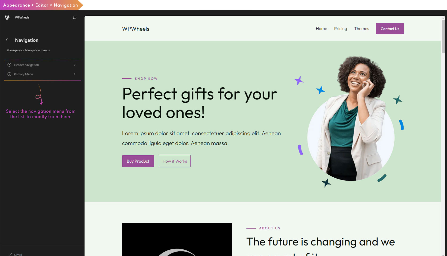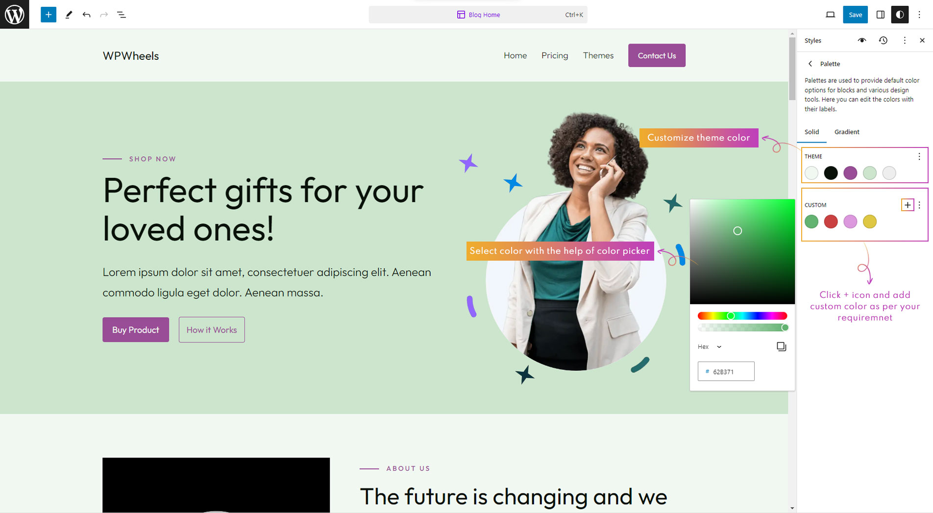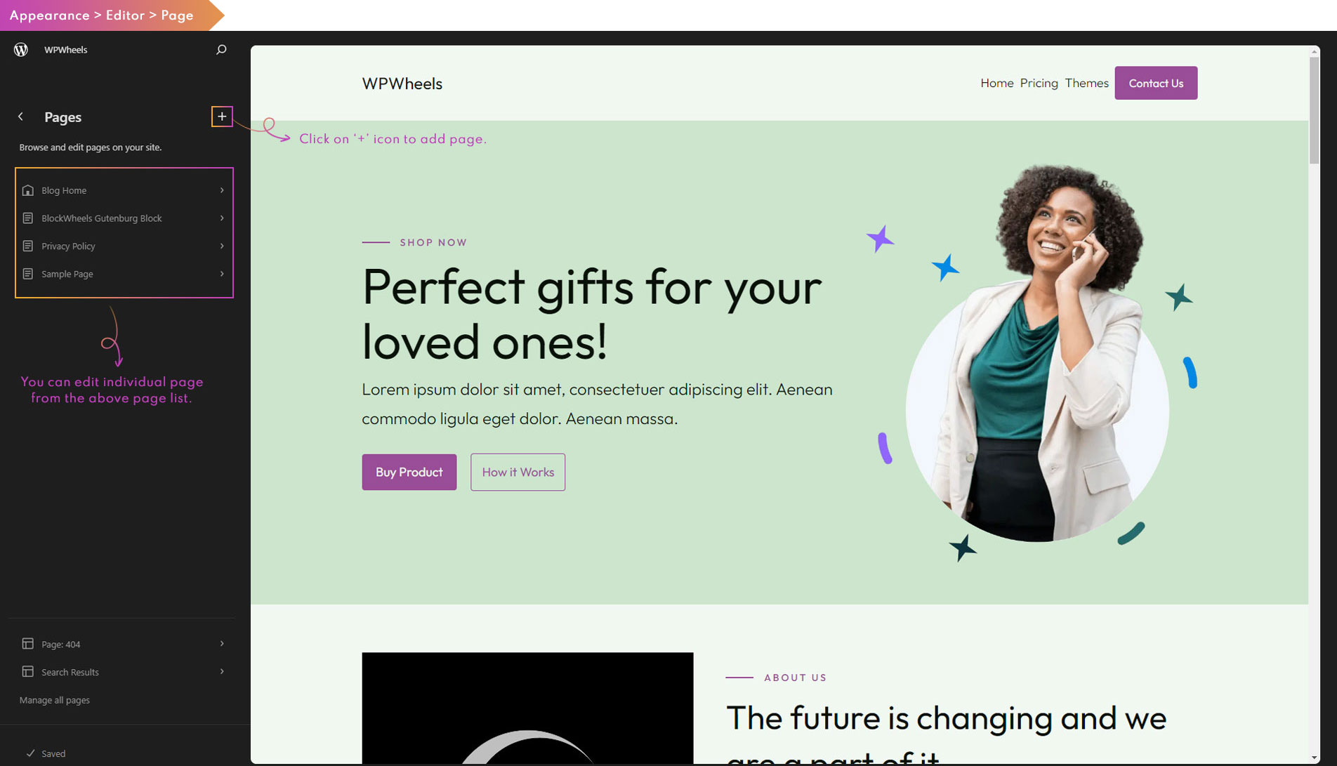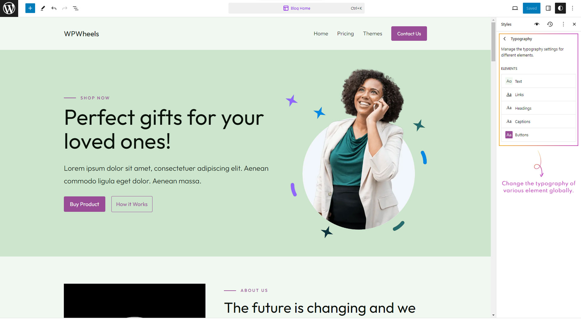 The BlockWheel themes are Full Site Editing themes. You can customize the website’s appearance using the block editor. It has the following options: